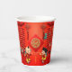 Festive salutation traditionnelle chinoise avec pétards, noeuds chanceux et nuages auspicieux + coupé en papier du Cheval d'or + deux enfants mignons pour souhaiter Bonne Année. Conception sur tasse de papier de fête. Fournitures de réception, carte de voeux standard, enveloppe rouge et plus... Parfait pour le Nouvel An Chinois du Cheval 2026.