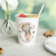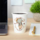 Adorable aquarelle petite fille baby shower tasses de fête, avec une petite fille éléphant à l'arc et des salopettes dans un style boho, dans les tons orange et sauge.