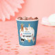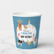A hand drawn cute blue petting zoo party animals design featuring illustrations of a goat, goose, hamster, llama, pig, baby chick, cow and rabbit . A beautiful petting zoo themed design ideal for kids petting zoo themed birthday parties. Customize this cute petting zoo animals birthday paper cup and make it your own!
