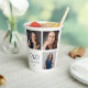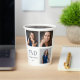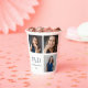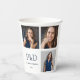 Photo Coupes de papier de graduation Phd avec trois modèles photo. Elles sont blanches avec un texte bleu qui inclut le nom de la diplômée, son diplôme et l'année. Ajoutez simplement vos mots et vos photos, ajoutez ces tasses à votre panier, puis célébrez l'accomplissement majeur de votre diplômé. Photo PhD Graduation Papiers Coupes Conception de jour férié | ©Melissa Patton - Designer