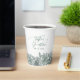 Personnalisez ces mignonnes tasses en papier floral avec vos noms, date mariage et photo. Couleurs de ce design moderne et élégant : blanc et vert sage.