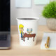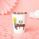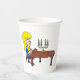 Une femme aux cheveux jaunes assise en jouant du piano. Cette conception semble vraiment efficace sur ces tasses de papier