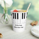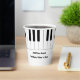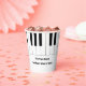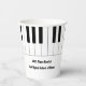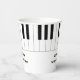 Coupes de papier de réception récital de piano, faites en noir et blanc, avec des graphiques de touches de piano, le long de la moitié supérieure de la tasse. Personnalisez le texte personnalisé noir pour votre récital ou réception sur le thème de la musique.