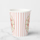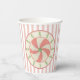 Ces gobelets en papier présentent un excellent début de design original avec un arrière - plan rayé rose et blanc où une couronne flottante de sigles de Noël autour d'un médaillon central d'un bonbon classique à la menthe poivrée de style pin. Il a une atmosphère rétro des années 1940-1950 en raison de nuances défraîchies de rouge et vert & effet "grungé".