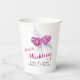 Personnalisez ces tasses en papier de fête de mariage avec le nom complet de votre couple. Bleu bleu marine foncé, couleur prune violette, sur des tasses blanches sont idéales pour les mariages d'hiver. D'autres objets et couleurs assortis sont disponibles. © Dessin et dessin à la main de l'art du pin par Sarah Trett pour www.mylittleedenweddings.com et www.mylittleeden.com