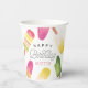Conçues pour répondre aux invitations de fête d'anniversaire de nos enfants, ces mignonnes tasses personnalisées en papier ont une bordure de popsicles aquarelles en vert et rose. "Joyeux anniversaire [nom]" apparaît dans le centre en lettres blanches.