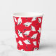 Si les couleurs de votre école sont rouges et blanches, ces tasses personnalisées de graduation chantent votre chanson d'école. Une tasse de papier personnalisée blanche et rouge pour une fête de remise de diplômes. Des casquettes blanches de graduation et des mortiers jetés dans l'air sur un arrière - plan rouge. Fun graduation fête papier produits pour les diplômes du secondaire ou collégial.