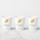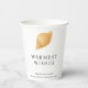 Des tasses en papier de Noël modernes, au design simple et amusant, avec un coquillage et des salutations "Les souhaits les plus chauds".