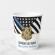 Une excellente façon de féliciter le nouveau retraité ou diplômé pour sa retraite ou son diplôme de l'académie de police. Cette conception comprend un drapeau de la police avec des rayures noires et blanches, ainsi qu'une fine bande bleue. Customisez avec le nom de l'agent d'application de la loi, du shérif, du capitaine ou du chef qui prend sa retraite ou qui est diplômé. Célébrez cette étape importante en style!
