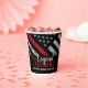 Cette conception comprend un drapeau de pompiers avec des rayures noires et blanches, ainsi qu'une fine bande rouge. Le texte "La légende prend sa retraite" se trouve au-dessus du nom du pompier, lieutenant ou chef qui prend sa retraite. Fêtez dans le style !