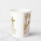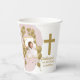 Cette jolie tasse en papier de premier anniversaire et baptême sera idéale pour la fête de votre petite fille. Ce design comprend une photo de votre enfant sur un arrière - plan d'aquarelle rose avec des ballons d'or. De l'autre côté se trouve le texte doré avec une croix d'or et le nom de votre enfant. Photographie © Storytree Studios, Stanford, CA