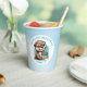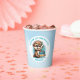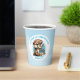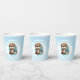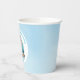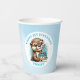 Bleu Otter thème du premier anniversaire du garçon tasse de papier de fête. Mignonne loutre de dessin animé tenant un gâteau d'anniversaire.
