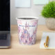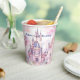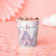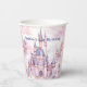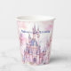 Belle aquarelle d'un château d'anniversaire Princesse rose et violet, élégant, sur des tasses en papier.