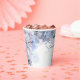 Ces belles Coupes en papier Mariage couleur d'eau avant de faire Hydrangea Flowers sont parfaites pour votre soirée d'été dans le jardin de douche nuptiale. Ces élégantes tasses jetables présentent une photo florale peinte en aquarelle numériquement de pétales de fleurs d'hydrangée bleu clair avec un arrière - plan blanc.