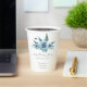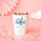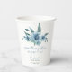 "Quelque chose de bleu avant que je ne fasse" des tasses en papier personnalisées pour la douche de mariage avec des florales aquarelles et une police de caractères élégante.