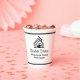 This professional realtor paper cup is custom made with your real estate company name under the modern cursive script for an open house. This trendy minimalist white and black realty business party decor features a house logo image for home builder or realty agent company marketing.