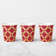 Elegant red and golden paper cups. Ideal for parties and festive special occasions. Red background with a golden Arabic-inspired pattern in modern style. Abstract, illustration, elegant, geometric, modern, ethnic, baroque, luxury, Arabic, Moorish, motif. Size: 236ml, no lid.