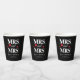 Tasses romantiques en papier noir pour un mariage lesbien avec MRS et MRS. écrites en lettres gras avec un coeur tourbillonnant et rouge. Personnalisez avec vos noms et date mariage !