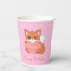 Gobelets En Papier Renard d'anniversaire et fleurs sur rose clair