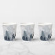 Des tasses en papier à l'aquarelle représentant un renne en silhouette noire se dressent au milieu de quelques pins. Couleur gris noir et blanc neutre.