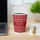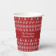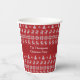 Un arbre de Noël vintage, un flocon de neige et un motif de chandail en Jacquard de rennes en rouge autour de votre texte personnalisé sur une tasse de papier fête de vacances. Customisez vos vacances avec ces belles tasses nostalgiques et démodées.