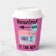 Rewind Back to the 80's, ce design présente un style rétro des années 1980 en rose et bleu avec un texte disant, "Rewind Back to the 80's".