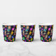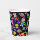 Les enfants vont adorer ces tasses en papier avec une gamme d'astronautes, de robots et de satellites des années 1950 aux couleurs vives et joyeuses contre un ciel étoilé 6 noir. #ZazzleMade