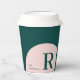 Cette tasse de papier café moderne présente une initiale simple avec des blocs de couleur élégants (rose et vert Turquoise). Ajoutez vos informations marketing à cette tasse personnalisée. Vous pouvez utiliser cette tasse personnalisée à votre lieu d'affaires, magasins, événement d'entreprise ou, etc.