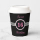 Élégant rose sucré 16 avec rayures blanches sur tasses noires d'anniversaire. Le texte peut être personnalisé pour d'autres âges, Anniversaires, réunions d'entreprise, affaires, fête et plus encore!