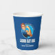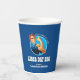 Rosie le Riveter LABOR DAY BBQ tasses en papier, avec arrière - plan bleu moyen. Le design montre l'emblématique Rosie apparaissant à l'intérieur d'un cercle bleu cyan clair, avec une typographie audacieuse. TEXTE EST PERSONNALISABLE pour que vous puissiez ajouter le(s) nom(s) d'hôte et les détails de l'événement. Ces tasses de papier barbecue de la Fête du Travail sont un ajout élégant à votre vaisselle de fête d'été et une excellente façon d'aider à célébrer le week-end de la Fête du Travail avec vos amis et votre famille.