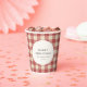 Des tasses en papier de Noël rustiques avec un design élégant, le salut modifiable "Joyeux Noël" avec votre nom de famille et l'année sur un style vintage en vichy motif.