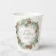 Élégantes tasses en papier de vacances avec une couronne d'aquarelle de cônes de pin, de pignons de pin, et une végétation luxuriante avec un arrière - plan crème légère. "Joyeux Noël" est affiché dans un script vert foncé avec votre nom ci-dessous. Le dessin se répète à l'arrière de la tasse. Les tasses en papier de Noël rustiques sont parfaites pour les fêtes de fin d'année, les dîners de Noël et autres événements de vacances.