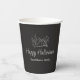 Rustic Fall Happy Halloween Party Paper Cup, avec un citrouille simple sur un arrière - plan de tableau noir. Avec le lettrage typographique personnalisable, vous ajoutez votre propre texte. Un complément amusant à votre fête d'automne et divertissant.