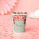 Célébrez la future mariée avec élégance grâce à ce gobelet en papier personnalisé pour le brunch de la fête de mariage floral. Conçu avec délicatesse sur un fond vert sauge serein, il dégage sophistication et féminité. Orné de fleurs de pivoine rose blush et pêche enchanteresses entrelacées de verdure luxuriante, il crée une scène botanique captivante, parfaite pour une célébration printanière. L'ajout de fraises rouges vibrantes ajoute une touche de couleur et une pointe de douceur, faisant écho à la joie et à l'excitation de l'occasion. Ce gobelet incarne l'essence d'un brunch chic de fête de mariage, préparant le terrain pour que des souvenirs précieux se créent.