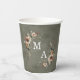 Gobelets En Papier Sage Whisper Green Floral Wreath Mariage Monogramm