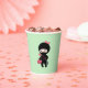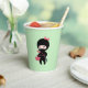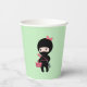 Mignonne caricature ninja fille habillée en noir mais pour un arc rose sur son masque de tête. L’épée katana japonaise traditionnelle peut être vue attachée sur son dos, sa poignée est également rose. La fille tient un panier rose.