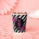 Célébrez dans le style avec ce design unique de tasse en papier Sweet sixteen avec un grand "Sweet 16" en argent et rose chaud. L'arrière - plan noir solide est surmonté de bandes diagonales dans le même effet de feuille d'argent avec des roses roses chauds et luxuriants autour d'un cadre ovale. Si vous le préférez, le "Sweet 16" attrayant est facultatif et peut être supprimé pour utiliser ce modèle à d'autres occasions. Utilisez le modèle fourni pour customiser votre nom et votre date de naissance. Recherchez ID759 pour voir d'autres produits et options de couleur pour cette conception.