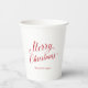 Tasse en papier mignonne avec typographie moderne et design simple avec "Joyeux Noël" dans un élégant script rouge avec votre nom de famille sur un arrière - plan blanc. Ces tasses en papier sont parfaites pour ajouter une touche personnelle à votre fête de vacances.