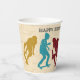 Créez des approvisionnements personnalisés avec un thème de planche à roulettes. Ces tasses en papier de skate park sont des illustrations de skateboarders en orange rouille, bleu turquoise, rouge foncé, jaune moutarde et vert ensemble contre un arrière - plan à faux grain de bois. Le texte est en gris charbon et tout est prêt à être customisé avec vos informations.