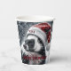 Un skunk rayé a l'air festif dans un chapeau de Père Noël rouge.