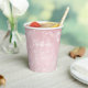 Vous cherchez une élégante tasse de papier baby shower en hiver au pays des merveilles? Ce charmant gobelet présente des parties scintillant et des flocons de neige sur fond rose clair.