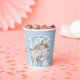 Cette adorable tasse en papier princesse hivernale enneigée présente un château de neige et une belle jeune princesse aux cheveux bruns portant une robe de flocon bleu et blanc et une cape à fourrure chaude doublée. La princesse est entourée de poinsettias. Vous pouvez personnaliser avec le nom spécial de la princesse d'anniversaire !