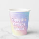 Célébrez l'anniversaire de votre petite fille avec ces jolies tasses en papier mousseux à arc-en-ciel pastel qui présentent de belles lettres blanches à l'ombre violette pour le nom de votre enfant. Ce décor magique illustre l'enchantement de l'enfance.