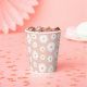 Ajoutez une touche finale à la fête d'anniversaire de votre petit avec ces tasses en papier, avec un motif de marguerites sur un arrière - plan rose.