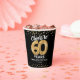 Élégantes tasses de fête du soixantième anniversaire avec un élégant arrière - plan noir qui peut être changé à n'importe quelle couleur, parties scintillant brillante or, qui dit "applaudissements à 60 ans" en utilisant soixante ballons d'hélium or, leur nom, et la date de la célébration.