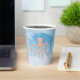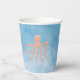 Sous les tasses de papier de mer. Arrière - plan bleu azur avec pieuvre rose mignonne.