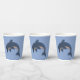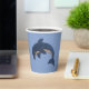 Ces tasses en papier ont un éclat comme le dauphin qui est bleu foncé avec un ventre blanc en position de saut à l'avant et à l'arrière sur un arrière - plan bleu clair.
