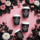 Des flores d'aquarelle gothiques et délicates rencontrent d'adorables tasses en papier parfaites pour une soirée baby shower gothique à thème Halloween. Nos designs doux et artisanaux ajouteront une touche de fantaisie et d'élégance à votre célébration de baby shower. Élevez votre événement avec ces tasses en papier uniques qui impressionnent vos invités ! Notre design présente nos flores gothiques aquarelles peintes à la main et nos mains squelettes créant une forme cardiaque avec des empreintes de bébé roses. Le design saisit l'essence d'un thème gothique mignon et mystique. OEuvre originale en aquarelle dessinée à la main et design par Moodthology Papery.