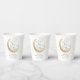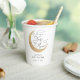 Au-dessus des tasses de papier baby shower Lune. Le design présente une fausse lune d'or avec "Nous sommes sur la lune" dans un texte de calligraphie mignon. Personnalisez avec vos informations ou cliquez sur "Cliquez pour customiser plus loin" pour modifier les styles, la taille et les couleurs des polices.