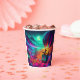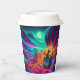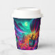 A beautiful and terrifying composition! The cup design utilizes a strong vertical perspective to show the hot air balloon ascending away from the swirling clouds and the neon-lit horrors of the haunted amusement park. The spooky colors—deep purples, cyan flashes, and emerald greens—make this an instantly eye-catching and mood-setting piece. This design offers a vast, sweeping aerial shot of a thoroughly haunted theme park. Every detail is rendered in neon spooky colors, giving the cup a vibrant yet sinister look. The tiny figures of Shaggy and Scooby in their oversized balloon basket provide a sense of scale, highlighting the impressive and intimidating scope of the creepy carnival they're floating over.